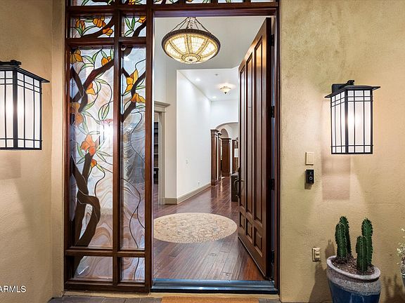 Step into luxury with this 6BD, 6BA estate, a beautifully designed 2-story estate that blends sophistication with modern convenience. Perfect for family living & entertaining, featuring designer finishes, LED lighting, & smart home upgrades - Nest Thermostats & Camera for comfort & security. The primary suite offers dual shower heads, body jets, & an in-closet washer/dryer hookup. Additional highlights include a detached casita, theatre room, pentagon safe room, a massive garage (ideal for car enthusiasts) an in-home elevator, an observation deck with mountain views & a chef's kitchen with high-end appliances. A laundry chute adds convenience, while outdoor amenities like a pool, top-deck views, and a 2022 built-in BBQ set the stage for relaxation and gatherings. An oversized 6-car garage with epoxy floors, & a spacious RV garage. Just 20 minutes from Sky Harbor Airport. This home is truly one of a kind, offering elegance, convenience, & unparalleled amenities.