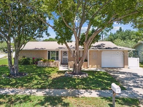 Beautifully Updated and maintained split 2 bedroom home with 2 car driveway and over sized garage. Interior Features, Bedrooms feature walk-in closets-master bedroom has 2 walk-in closets.Remodeled kitchen with Quartz counter tops, upgraded cabinets, recessed lighting and matching GE appliances.Wood look ceramic tile flooring throughout with 3 1/2 in baseboards, newer insulated windows in family room and living room. All NEW 6" gutters. NEW Water Softener. NEW Blinds throughout. Newer french doors with doggy door leads out to the Large enclosed patio. Newer hurricane rated garage door, the electrical panel was updated in 2021, new irrigation pump in 2021, new water heater in 2021 and roof in 2013. Close to the beaches and 30 min to Tampa International Airport. Located on a small canal leading to pond...no amenities or access of use.