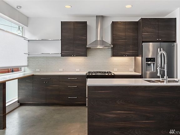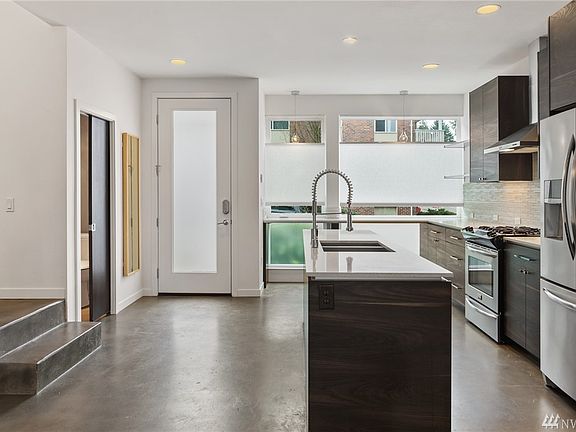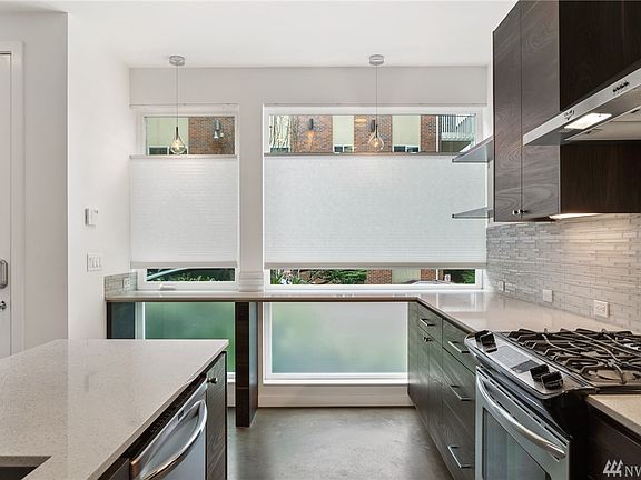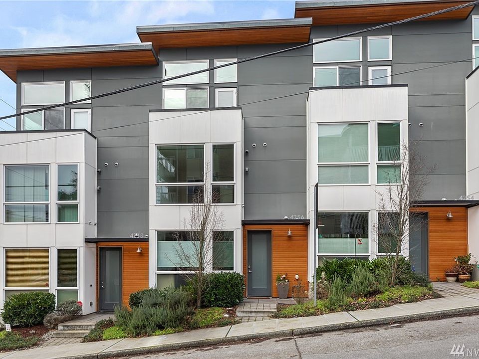 Walk to Morgan Junction, Caffe Ladro, Lincoln Park from this 2013 Isola Homes 5-star BuiltGreen t'home. Upper decks w/ Sound & mountain sunset view. Main level w/ in-floor radiant heat & stained concrete, quartz slab counters, custom soft-close cabinets, floor to ceiling tiled gas FP, & sliders to patio. Top floor Master suite w/ Juliet deck, clerestory windows, & walk-in shower. 2nd floor W/D closet. 97% efficient on-demand X-lg tankless water heater. Wired for electric car charger. Near buses.