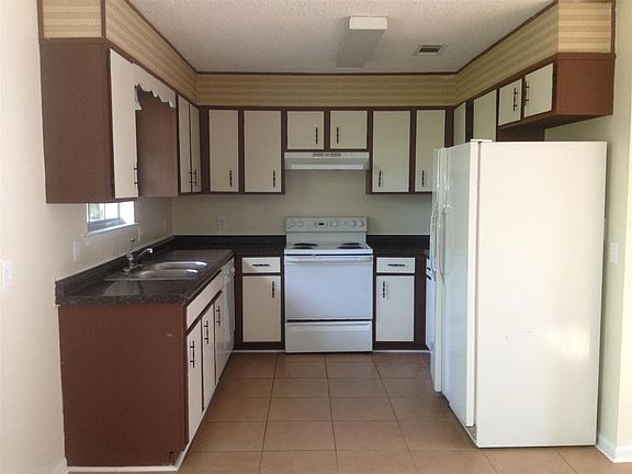 Super location for this brick, three bedroom home on a good sized lot. Fenced yard with huge majestic oak trees. A rural like setting in a family oriented neighborhood. Great School district and close to shopping, restaurants and churches. Thirty minutes drive to spectacular beaches! Neutral colored ceramic tile throughout living areas. Garage area has been turned into a bonus room and laundry. Bonus room could be used as a fourth bedroom. The refrigerator is not warranted.