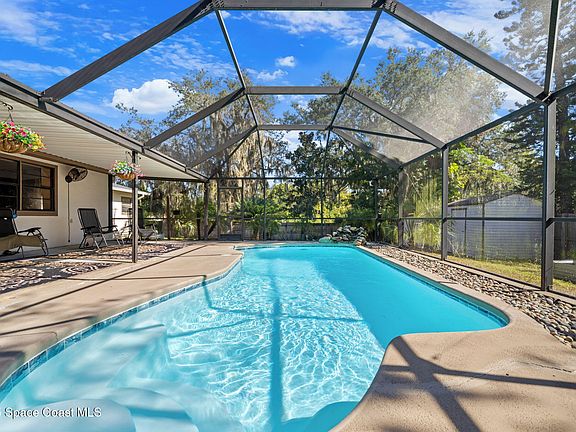 Dive into Florida living with this spacious Port St John pool home on a fenced .26-acre CORNER LOT! Enjoy a SCREENED POOL with tranquil waterfall feature, RESURFACED in 2023 ($10k), plus plenty of patio space for lounging and entertaining friends. Big-ticket items are already done: SEPTIC SYSTEM REPLACED IN 2020 and NEW ROOF and GUTTERS IN 2022 ($15k), plus the peace of mind of CITY WATER. Inside, you'll find 4 bedrooms PLUS a 20 ft x 13 ft bonus room, a main living room PLUS a 2nd large living room/den—perfect for a home office or flex space. Easy-care flooring throughout and NO CARPET. Brand new vinyl flooring in the primary bedroom. Wood look tile throughout the kitchen, dining, 2nd living area and 4th bedroom. Flooring replaced throughout the living room and other bedrooms within the last 5 years. The backyard offers room to roam, with 2 outdoor storage sheds for tools, toys, or hobbies. Over 2,100 sq ft—move in and start enjoying that Florida lifestyle!