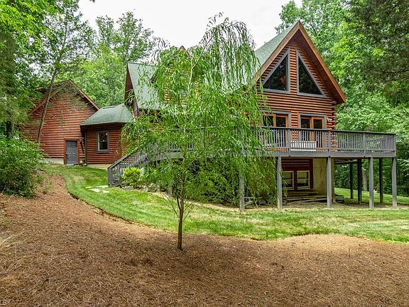 Seller offering a $5000 buyer rate buydown or closing cost assistance with acceptable offer. Your retreat in Davidson County priced below recent appraisal. This stunning open concept log home can make you feel like your on vacation every day. As you walk through the front door, wide open vaulted ceilings make the home feel expansive and open. The double sided two story stone fireplace is beautiful and has gas log lighters so you can enjoy gas and/or wood burning fire. The Primary suite on the main level has a spa-like bath which was recently remodeled and includes a large walk-in shower as well as a freestanding cast-iron tub. This home is made for relaxation. Set way back off of the road, it lends itself to privacy but is convenient to most anything. The property includes a large wired metal building as well as two additional carports. Unfinished, but heated and cooled basement. The above Garage studio with full bath has it's own private entrance. Agent owned.