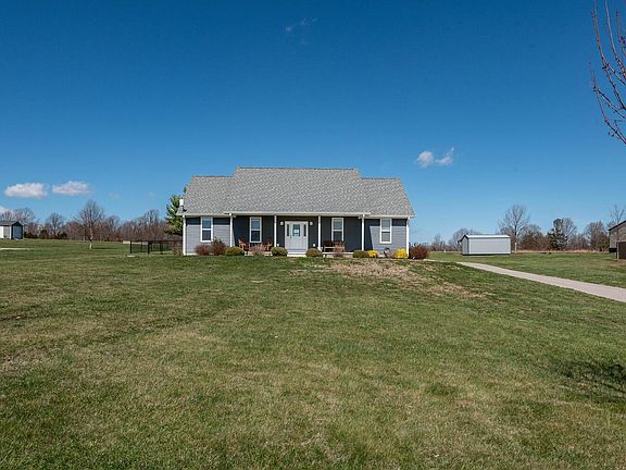 This 3-bedroom, 2-bath home on 1 acre sits across from Rolling Meadows Golf Course. The open floor plan features a split-bedroom design, stainless steel appliances, granite countertops, a center island with bar seating, and hard-surface flooring throughout. French doors off the dining area open to a fenced backyard with a screened-in covered patio (2025), perfect for outdoor enjoyment. The primary suite includes a walk-in closet and en suite with garden tub, double vanity, separate commode room, and a walk-in shower with new glass doors (2025). Two additional bedrooms share a full hall bath. A laundry room with utility sink, built-in drop zone, and garage with EV charger add convenience. Recent upgrades include a radon mitigation system (2025), Nest Security and Thermostat, and an encapsulated crawlspace. Located in Rolling Meadows with easy access to Ellettsville and Spencer via Hwy 46, this home blends comfort, convenience, and peace of mind.