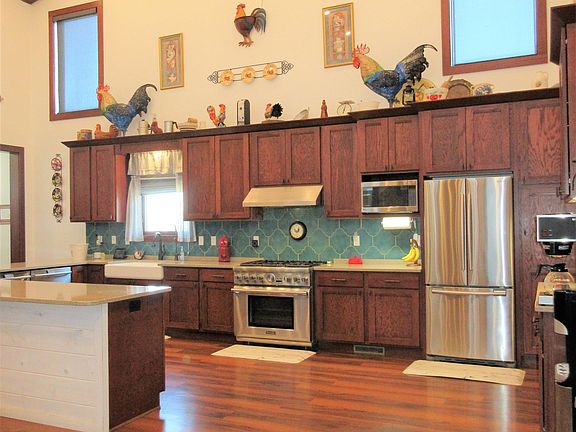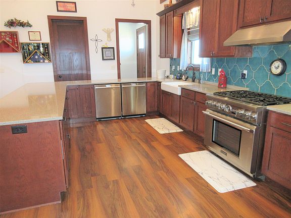 This 2018 built 3 bed/3 bath home sits on a sprawling 5 acres and was constructed with quality in mind! Inside you'll find an open great room kitchen/dining/living room with cathedral ceilings, wood burning fireplace, and access to a composite deck. The spacious kitchen is outfitted with stainless appliances, dual dishwashers, pantry, and a professional 6 burner gas range. Other main floor offerings include convenient main floor laundry, guest bath, primary suite complete with walk-in closet and ¾ bath, two spacious bedrooms, and a full bath. The lower level was built with an insulated foundation system and features a huge family room, office, storage room, and mechanical space with on-demand water heater and Culligan water softener/filtered water system. In addition to the oversized double attached garage with floor drains and a 4x11 storage closet, there is a massive 42x45 heated/insulated shop with a 14' overhead door, floor drain, and water hydrant. Gorgeous views and wide open spaces (both inside and out), don't miss your chance to call this acreage home!