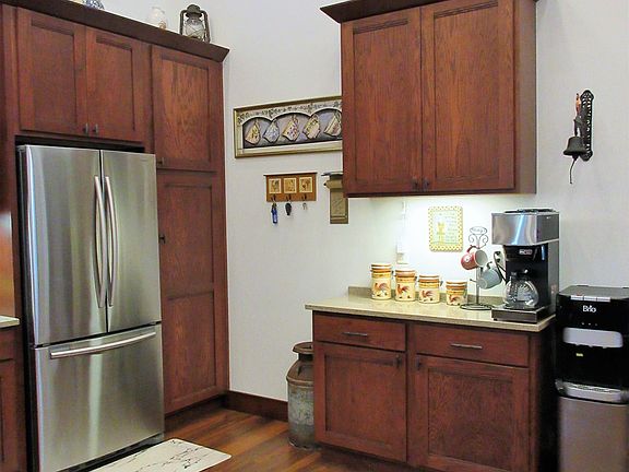 - Property Features: Ceiling Fan, Deck, Fireplace - Wood, Garage w/ Opener, Water View, Window Treatment, Master BR W/I Closet, Walk-in Closet, Covenants, Main Floor Laundry, Ceramic Tile, Outbuilding(s), Fenced Yard, Water Softener, Radon Mitigation System, Egress Window(s), Sump Pump, Pantry, Cathedral Ceil, No Step Entry - Garage, No Step Entry - Front