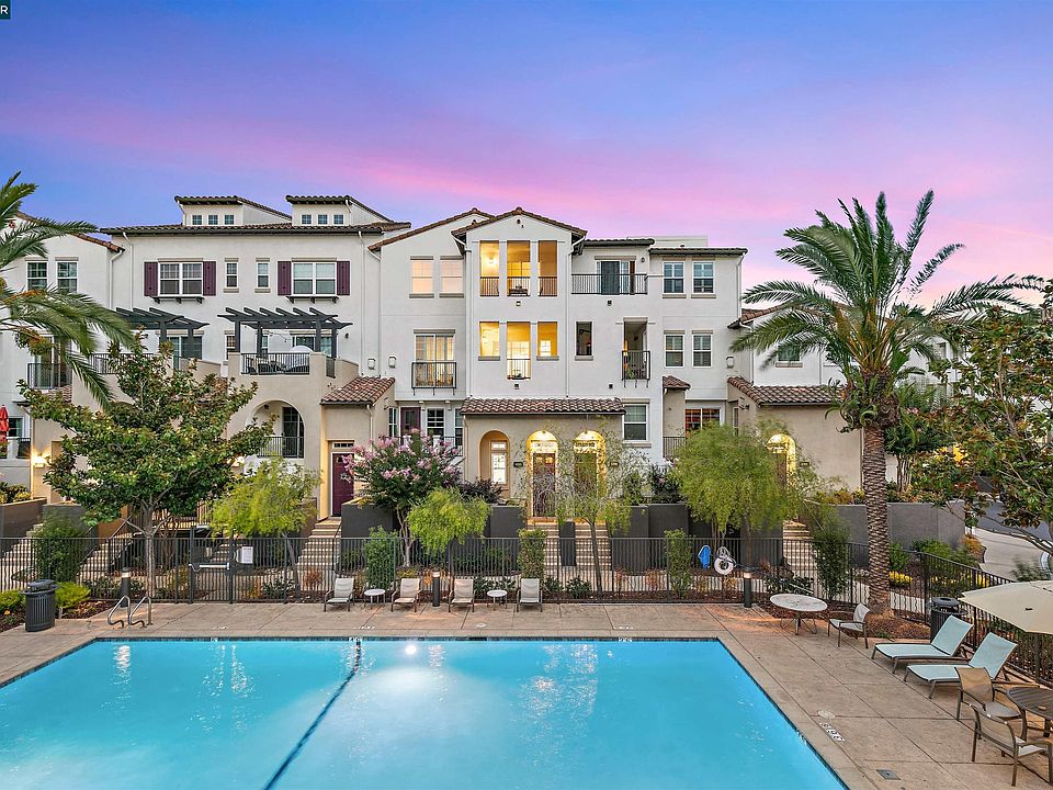 Welcome to 4258 Clarinbridge Circle! This Mediterranean-inspired home is all about easy living with a touch of luxury and Melrose Place. Featuring an open view overlooking the greenbelt and pool, it’s perfectly placed in the heart of coveted Dublin Ranch—close to shopping, dining, parks, express bus to BART and top-rated schools. Inside, hardwood floors flow through an open layout where the chef’s kitchen with stainless steel appliances and a big island connects right into the living room with its cozy gas fireplace. Step out to your covered balcony and enjoy pool views—ideal for morning coffee or evening unwinding. Upstairs, the primary suite feels like a retreat with its own balcony, walk-in closet, and spa-style bathroom with dual sinks, a soaking tub, and separate shower. The second bedroom also has its own walk-in closet and plenty of light, with a full bath right nearby. And don’t forget the extras: a secure 2-car garage, tons of storage, and access to resort-style perks like the pool, hot tub, clubhouse and gym. With tree-lined streets, nearby trails, and quick BART and freeway access, this home makes it easy to love where you live. OPEN SUN