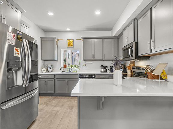 - Features: Disposal, Microwave, Pantry, Free Standing Range, Free Standing Refrigerator, Laminate Flooring, Plumbed For Ice Maker, Quartz