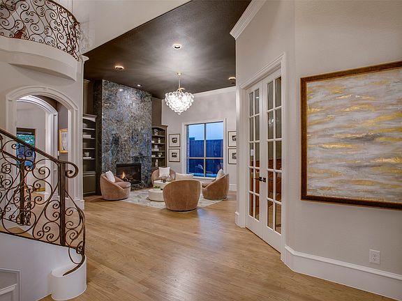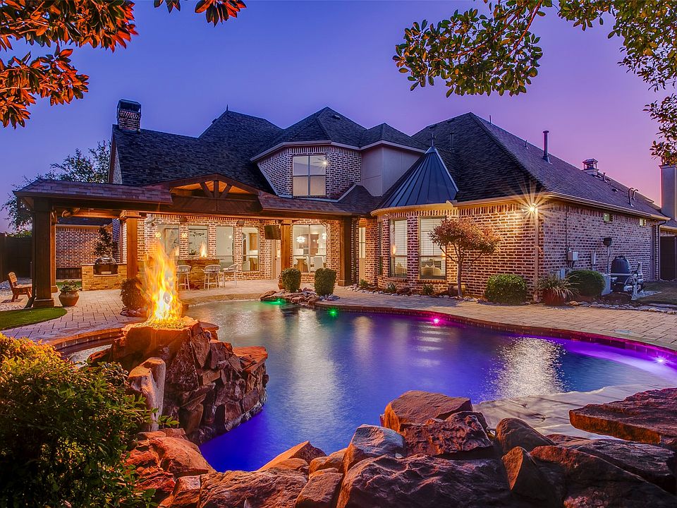 Luxury at it's finest reimagined 2006 Phiefer custom home across from greenbelt w 5 bedrooms, 4.5 baths, 3 car + port a cache in the highly sought after prestigious gated community of Shaddock Creek Estates of Frisco! Stunning designer touches throughout with sophistication and modern luxury in every detail including soaring ceilings, exquisite lighting, led lighting, custom cabinetry & built-ins, expanded crown & base + more. Designed for entertaining, this home features and elegant formal living with floor to ceiling marble fireplace and formal dining perfect for larger gatherings. Chefs kitchen boast an abundance of custom cabinetry, Stainless Steel appliances w double ovens, gas cooktop, island, walk in pantry, large breakfast bar and flows to the breakfast and family room w cathedral wood beamed ceilings, built-ins and fireplace. Private primary situated down spa like bath including fireplace, soaking tub, oversized seamless glass shower, split vanities, walk in closet & overlooking the backyard. Upstairs features large gameroom and media room with wet bar, wine fridge and media equipment. Secondary bedrooms share a Jack and Jill bath and third Bedroom with ensuite bath. Enjoy the backyard oasis featuring sparkling pool & spa, fire pits, outdoor kitchen, built in grill, built in smoker and spectacular covered patio.