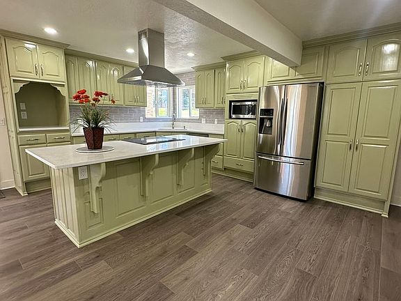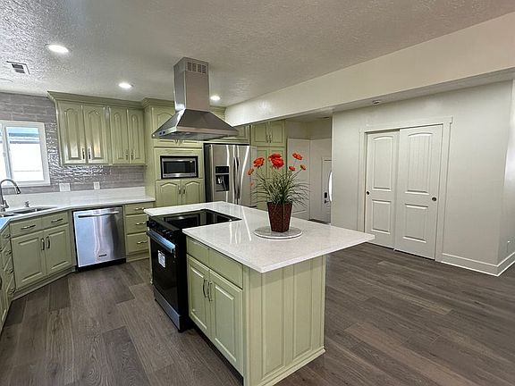 - Exterior features: Built-in Dining Buffet Cabinetry, Chandelier Lighting, Private Backyard, Quartz Countertops, Solar Panels, Stainless Steel Oven/Range (Upstairs), Two Full Kitchens, Utilities fee required, Utility/Storage Room, Washer Dryer Hookup