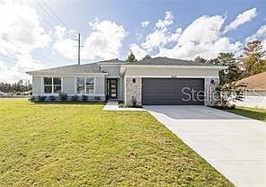 One or more photo(s) has been virtually staged. Under Construction. BUILDER WILL CONTRIBUTE UP TO $20,000 TOWARDS BUYERS CLOSING COSTS/PREPAIDS AND/OR A MORTGAGE RATE BUYDOWN (with a Preferred Lender). HERON - Beautiful New Construction in an established neighborhood! Once you walk past the stone front facade and see the soaring 9+ foot ceilings and the extra-large (8 foot) slider you won't want to leave! The beautiful kitchen is a cook's dream. Quartz counters atop solid wood cabinets with soft closed doors and drawers with elegant hardware. A center island completes this dream room. You won't believe the huge pantry and laundry areas tucked away and out of sight. The Primary bedroom is spacious and has a top tier bathroom with a tiled walk-in shower, dual sinks and a massive walk-in closet and separate toilet room. There are 3 more spacious bedrooms. The entire family can comfortably spread out in the expansive great room. There is solid surface flooring throughout the home for easy cleaning. Upgraded raised height vanities and toilets in all bathrooms. Extra-large covered lanai for enjoying the Florida weather. Don't miss out on this incredible opportunity to own this beautiful home. Call Today!!! Photos are a different home, but the same model. Come by our model at 5069 SW 109th Loop.