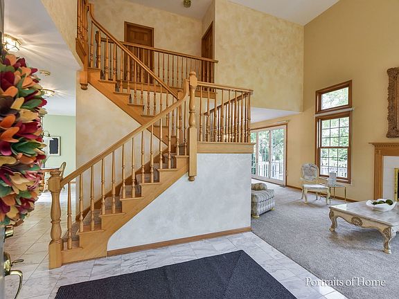 Perfect LOCATION, Excellent QUALITY & Gorgeous VIEWS! Step into this home with soaring ceilings, windows, a stunning fireplace & an amazing staircase...Quality at every turn. Filled with natural light the living & dining rooms are simply beautiful. Every season is stunning from this living space. The spacious kitchen with center island and coffee bar steps out to your private front patio...morning coffee served here. YES, there is a FULL BATH on the 1st floor with direct access from the den...love that! And the 1st floor laundry room steps right into the kitchen. The 1st floor flows perfectly. Sweet dreams in the spacious MASTER SUITE complimented by a Bath with dual sinks, PLUS separate tub & shower. Love the views and peaceful sounds from your Master Retreat The 2nd & 3rd bedrooms share a spacious bathroom. THERE ARE 4 FULL BATHS IN THIS HOME! The FINISHED LOWER LEVEL makes this home over 3,400 sq. ft. The lower level offers additional living space to enjoy and entertain, complete with ANOTHER FIREPLACE & FULL BATH. PLUS a storage/mechanical room, generous storage here. All done with great thought and PRIDE OF OWNERSHIP. Step outside...the deck spans the back of the home & offers privacy, gorgeous views and an EZ walk to the owners clubhouse with pool, tennis courts, pickle ball and more. EVERYTHING IS NEARBY...shopping, dining, expressways. RECAP...2 FIREPLACES, 4 FULL BATHS, END UNIT, AMAZING VIEWS IN EVERY SEASON! WELCOME HOME!
