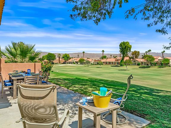 Amazing fairway views await, perched high above the 18th hole of the Oasis CC golf course with beautiful eastern exposure. Picture yourself on the patio, sipping morning coffee as the sun rises. Golf course views stretch into the dining and living rooms. The kitchen features a gas cooktop and bar seating for four. A dual-sided fireplace adds charm to the living and dining areas. The master suite includes a dual-sink vanity, a shower, and a walk-in closet, with a skylight brightening the bathroom. Guests can enjoy a spacious room with a large closet for their belongings. The laundry room connects to a two-car garage with space for a golf cart. This non-age-restricted community offers 18 pools and spas, with the nearby Enclave pool and spa a short stroll away. Relax in the gazebo and enjoy the serene water feature. The Oasis Country Club boasts golf memberships, tennis, pickleball, practice areas, a lending library, fitness room, and an 18-hole putting course. Furry friends are welcome at the bark park. The clubhouse offers casual dining at the Grille Room or the covered patio, with popular events like Thirsty Thursdays and Happy Hour Fridays. With minimum short-term rentals, Oasis is perfect for full-time living or a part-time retreat. Conveniently located near entertainment and dining, The Oasis Country Club truly is a special place!