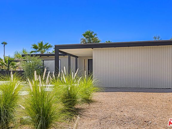 Mid Century Modern architectural house that has been remodeled while preserving original details including floor to ceiling windows, a stone wall with inlaid glass and a stovepipe fireplace. Enjoy the desert lifestyle of indoor/outdoor living with an enormous covered patio that acts as an extension of the living room. Situated on a large lot with mature olive trees, the sparkling brand new pool is surrounded by amazing views of the Santa Rosa mountains. The kitchen doubles as a bar with custom cabinetry and features a Viking range, built in Bertazzoni refrigerator and custom cabinetry. Numerous upgrades include a new roof, hardscaping and drought tolerant landscaping, appliances, HVAC system, recessed lighting integrated into walnut paneled ceilings, terrazzo, aged walnut flooring and custom slate flagstone. The master bedroom has built in custom closets, a private patio and large en-suite bathroom with Dornbracht fixtures. Located in the highly sought after neighborhood of Magnesia Falls Cove, walking distance to shopping, restaurants, parks as well as the best local hiking trails, this home is an ideal retreat or in demand investment property! All with NO HOA.