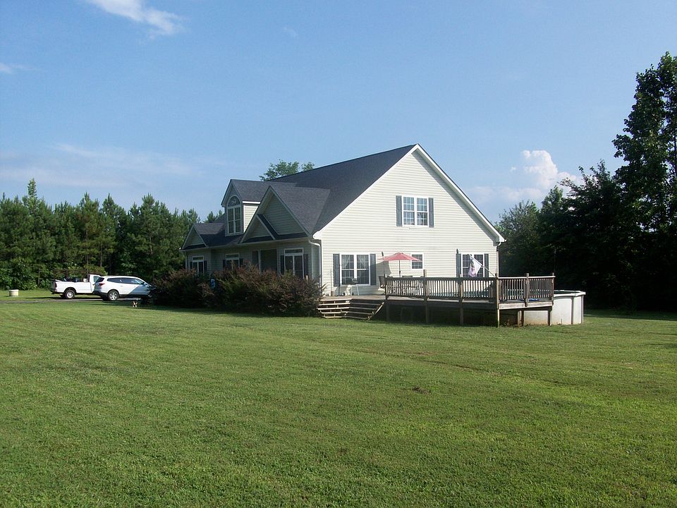 Single Family Home for sale by owner in Brodnax, VA 23920. Located five minutes from Southhill, Va on secluded 2.3 acres at the end of a private drive. Home was erected 2007. First level open with 3 bedrooms, 2 baths, kitchen, office, living room, and laundry room. Upper level partially finished with large bedroom, bathroom (partially finished, instant hotwater) and family room. Approximately 300 sqft unfinished space with electrical in place waiting for your finishing touches. Home is serviced by private well and septic. Home has full length front and side deck around 24 ft above ground pool. There is an out building for tool storage. The home is located in Mecklenburg County, Va. The school district will be Mecklenburg. Will consider rent to own finance for qualified buyer.