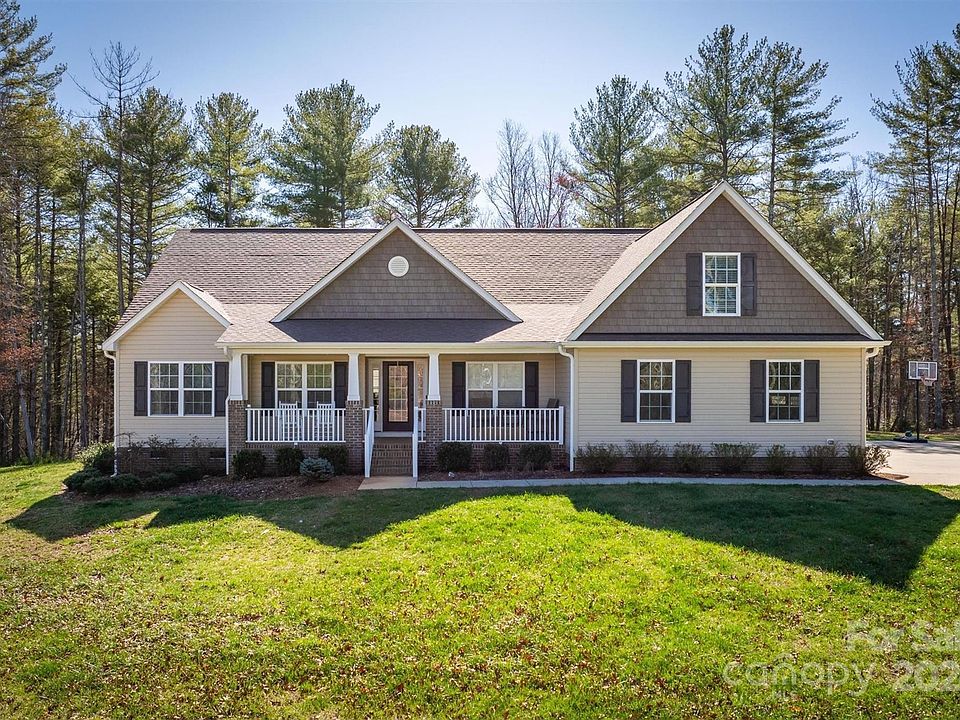 VERY RARE OPPORTUNITY to own nearly 60 acres with Blue Ridge Mountain views & be less than 10 mins from Lake James and Downtown Morganton. This property has tons of level topography, road frontage, 4+ miles riding trails, sm. pond, stream, wildlife and PRIVACY! Enter via the long paved drive to a custom built 2018 home & HUGE 2000 sqft detached garage(12x12 doors). The home boasts open concept kitchen, living, & dining area under vaulted ceiling. On main- 3 beds, 2 baths, laundry room, & office that could easily be used as 4th bedroom. Above the garage, spread out in the bonus room! The lg primary bedroom offers a walk-in closet and full bath w/ dual vanity. Welcoming kitchen w/ granite, SS appliances, island & pantry! Outback, enjoy the custom patio/ fire-it area w/ privacy. Detached garage boasts a finished room, half bath, & upper loft area. Beside the garage is a RV shed 15x50 w/ water, sewer,& power. At back of the garage another metal carport. LOW taxes-in Agricultural program.