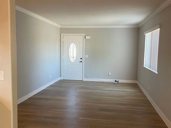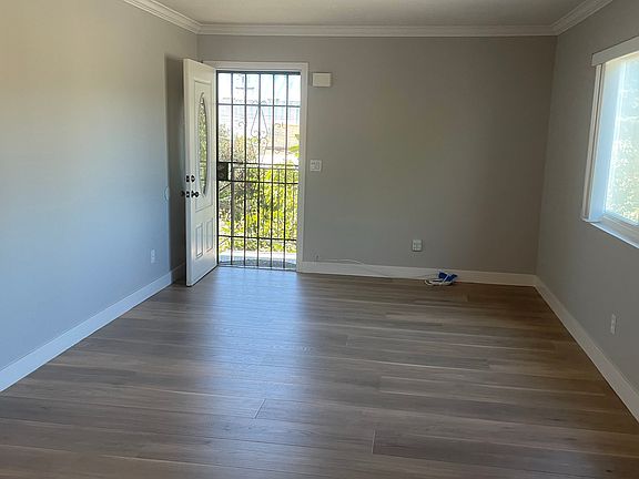 Very nice, must see large two bedroom, duplex, dining room with slider and breakfast bar. Freshly painted, crown molding throughout, new wood flooring, and ceiling fans. New appliances, stove, refrigerator, microwave and dishwasher. Window coverings. Walking distance for transit and shopping. Landlord pays for yard maintenance, and trash. Tenant responsible for all utilities, water, cable, gas and electric. There are two off street parking spaces
