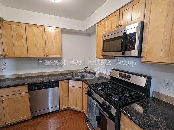 Includes heating, in-unit laundry, all standard kitchen appliances, and garage parking.