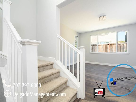 Unbelievable Fairfield home in the Bradbury Park Community located in a court location available now. In addition to solar, this home comes with large gourmet kitchen which includes, beautiful cabinetry, granite counters, modern style tile backsplash, stainless-steel appliances, gas range stove, large sink, lots of counter space, microwave range hood and so much more. Upstairs you will find three large rooms, including en-suite with large bathroom that includes dual sink vanities with plenty of counter space, LARGE walk-in closet with lots of built-in shelves, high ceilings, upgraded carpet and upstairs laundry room. Enjoy your private patio with stamped concrete, perfect for entertaining. Also comes with large 2 car garage. Local schools, Cordelia Hills Elementary School, Green Valley Middle School, Angelo Rodriguez High School Close to Travis Air Force Base. Close to Benicia and Vacaville. Located near, trails, I-80/680, Solano Community College, Solano Ranch Golf Course and conveniently located to premium shopping like, Paradise Valley Plaza, Green Valley Floral, Starbucks, Solano Shopping Center and Costco. This home will not last, call now to set up your private viewing! Pets are welcome! (Breed and weight restrictions apply). Fairfield real estate for lease.