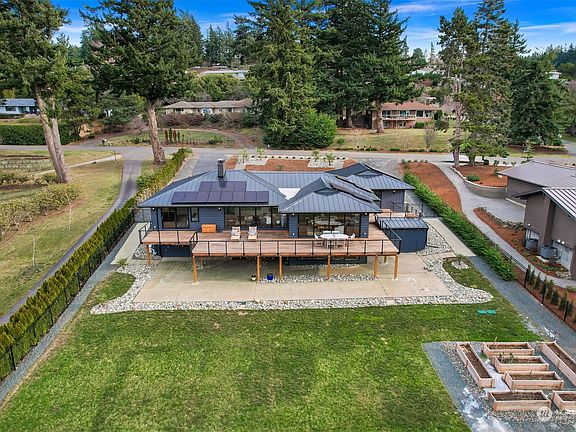 In the heart of enviable Edgemoor, meticulously renovated Mid-Century Modern offers intimate Bay and Island Views. Situated on a private 2/3 acre with clean landscaping + expansive fenced backyard with raised beds and fruit trees. Light-filled interiors with walls of architectural windows and doors. Exceptional finishes from the inside out. Entertaining kitchen with Walnut cabinets, Dacor appliances, granite countertops + spacious island. Large butlers pantry. West-facing Teak deck spanning the length of home. Main floor luxury primary suite. Zone heating/cooling. Lower level with a separate entrance ideal for MIL. Solar, electric charging stations. Stroll to community beaches. Walk to Historic Fairhaven, Ferry/Train Terminal and Dog Park.