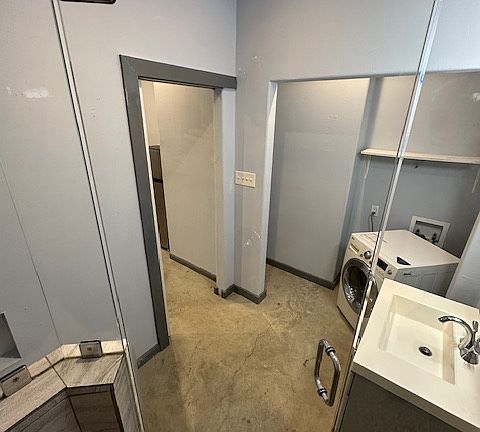 New appliancesLarge ceiling fanWasher and dryer comboModern build and layoutOwn small yardSilent mini-split hvac systemPebble stone shower floor