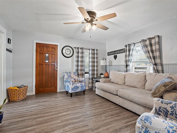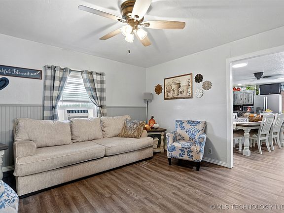 So Cute and cheaper than rent! Large kitchen with abundance of cabinets with a huge pantry. It also has a conventinent island that has storage and extra counter top. All the appliances are nearly new and the free standing freezer will stay with purchase. Living room has a heater that supplies heat for the whole house. There are three window units that comfortably cool the home as well. Beautiful bathroom with walk in shower and also houses the washer and dryer units which are behind the sliding barndoor. Two bedrooms that are tastefully done with good size closets .