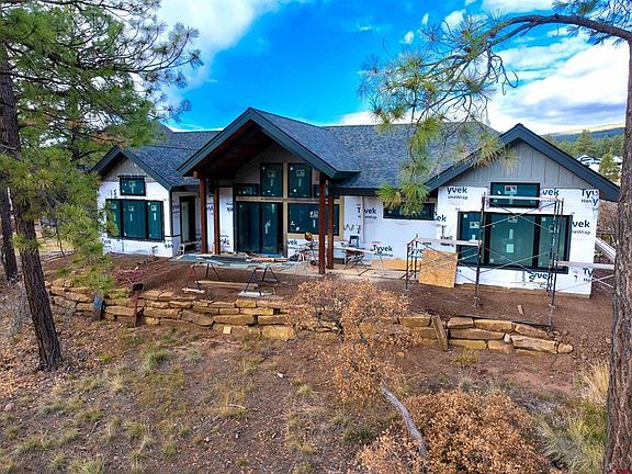 Welcome to another high-end, quality build by Luca Real Estate, perfectly positioned on a rim lot and set back approximately 70 feet for added privacy. This single-level, 4-bedroom, 3.5-bath home is currently under construction with an expected completion in early December 2025. As you approach the property, you will be greeted by a vaulted T&G front porch with 8 ft solid alder front door. Step inside to a spacious open floor plan that is perfect for entertaining. INTERIOR FEATURES & UPGRADES: • 10’ plate line with vaulted ceilings & exposed wood beams in all vaults • 8’ solid-core alder interior doors • Schlage hardware throughout • Insulated interior walls where needed • Engineered hardwood flooring throughout • 36" gas fireplace with tile surround & custom wood mantel • Quartz countertops & oversized fireclay sink • Soft-close solid-wood kitchen cabinetry with under-cabinet lighting • Stainless-steel KitchenAid commercial line appliance package, including 36" range & custom vent hood • Pot filler and oversized island with bar seating • Kohler faucets in kitchen and laundry with lifetime warranty • Large walk-in pantry with custom Closets Plus shelving • Kohler toilets throughout • Delta faucets in bathrooms • Ceiling fans in all bedrooms and the living room • Primary Suite: • Direct access to back deck • Oversized custom closet • Bidet ready outlet • Spa-style bath with dual vanities, curbless wet room w/glass door, two oversized rain shower heads, and Kohler soaking tub inside a 6'×9' tiled shower Guest Spaces: • One private ensuite bedroom • Two additional bedrooms with pass-through bath & separate vanities, plus Kohler deep soaking tub • Built-in mudroom • Laundry room with extra cabinetry, fireclay sink, quartz counters & desk area. EXTERIOR FEATURES & UPGRADES: •Rim-lot location backing to open space with mountain views • set back approximately 70 feet for added privacy and additional parking • Vaulted T&G front and back porch • 8' alder front door • Oversized black Andersen windows • 8’ Therma-Tru fiberglass exterior doors • Professional native landscaping with stacked sandstone retaining wall • Direct neighborhood trail access • Gas stub for grill and electrical run for hot tub on back deck • Oversized 625 sq ft insulated 2-car garage with insulated Clopay door, EV charger, extra storage & two exterior man doors • Tankless on-demand water heater with recirculating pump • Central heating & A/C and whole-house HRV air purification system. The location is ideal, just 7 miles from downtown Durango, 12 miles from Lemon Reservoir, and 15 miles from Vallecito Reservoir—placing you in the heart of Southwest Colorado adventures. Nearby, you’ll enjoy private Florida River access, community trails, neighborhood amenities, and the convenience of the Meadows Market. Be the first to call this simple yet luxurious home your own. The site plans, building footprints, floor plans, elevations, and renderings shown within the MLS are for illustration purposes only and subject to revision by the seller. Please do not visit without an agent present.