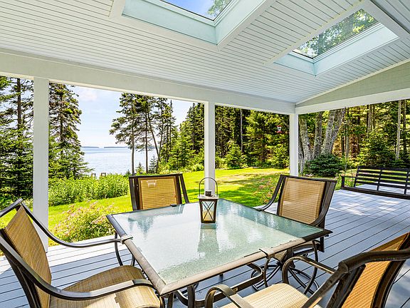 This custom-built Cape Cod-style home enjoys a spectacular waterfront setting with southerly views across Broad Cove, through Bracketts Channel, and out to Penobscot Bay. Surrounded by mature trees and expansive lawn, the home sits gracefully above the water's edge, offering a serene and scenic retreat. Ideal for summer getaways or year-round living this home is designed for effortless indoor outdoor living, nearly every room captures the beauty of the bay. On the first floor, French doors from the kitchen, living, and dining areas open to a deep, covered porch, perfect for relaxing or entertaining. Just beyond, a sprawling lawn leads to a set of stairs down to the beach. The first floor also features a formal dining room, sitting room, powder room, and a spacious mudroom connecting to a heated two-car garage and workshop. Upstairs, the primary en-suite bedroom and two additional bedrooms all enjoy water views. A full bathroom, large laundry room, and a generous office/family room provide flexible living space. A full, unfinished basement offers additional storage or future expansion potential. Located just one mile from the ferry landing and close to island amenities, this property is a true island gem. View our 3D tour and floor plans for a more immersive experience of this property.