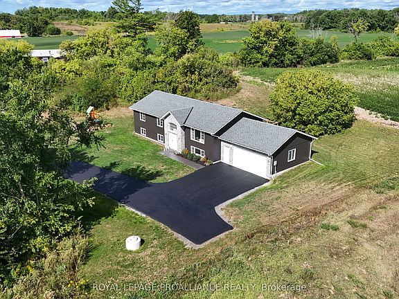 Nestled on a scenic 1-acre lot just outside Frankford, this 2023 custom-built bungalow is designed to impress. Surrounded by rolling hills, open farm fields, and fresh country air, this idyllic setting offers unmatched privacy and the kind of peaceful backdrop where mornings begin with quiet sunrises and evenings end under star-filled skies. Stockdale Public School (JK-8) is only minutes away and the 401 is close for an easy commute. The exterior features stone accents, a paved driveway, stamped concrete walkways, and an oversized insulated double car garage with inside entry. Inside, the 1,630 sqft floor plan is complemented with soaring vaulted ceilings and large windows creating a bright, open atmosphere. The kitchen is a showstopper with quartz countertops, a centre island, and a walkout to the rear deck, perfect for entertaining. The main floor offers three bedrooms and two full baths, including a spacious primary suite with walk-in closet and a luxurious ensuite featuring a double vanity and custom tile shower. Soft neutral finishes carry throughout the home, making it move-in ready for any style. The partially finished basement expands the living space with a 4-piece bath, bedroom, and laundry area, with plenty of potential to complete a rec room around the wood stove for a warm, inviting retreat. Enjoy year-round recreation with golf, skiing, and trails nearby, plus world-class boating and fishing on the Trent River less than 5 minutes away at the Germans Landing public boat launch.