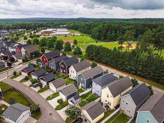 Easy, breezy, ready to rock! Located across from the Pollard Middle ball fields and equidistant between Chapel Hill and Pittsboro, this move-in ready property welcomes you home. The open layout centers the eat-in kitchen including quartz countertops, subway tile backsplash, pendant lighting fixtures for additional character, upgraded cabinetry and stainless-steel appliances. A built-in office nook adds versatility for work or study, and the chic half-bath is ideal for guests. Upstairs you'll find the primary suite, plus two additional bedrooms and a full bathroom. Outside, a covered front porch invites you to sit a spell and enjoy lush green views. Storage galore in your rear-entry two-car garage, and just enough space for your fire pit and herb harden in the fenced backyard. What a perfect blend of comfort, location, and community!