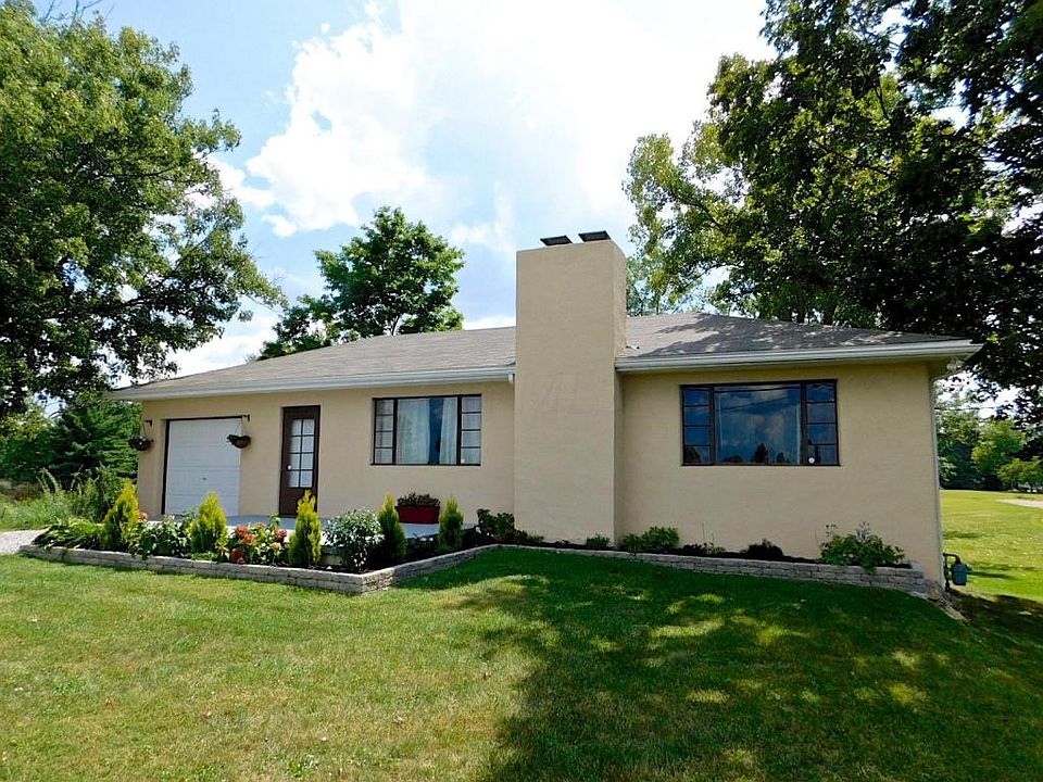 Welcome to this charming Lewis Center ranch situated on 5 beautiful acres. Enjoy a small town, rural setting with all the conveniences of the city nearby. Relax in the cozy living room with handsome stone fireplace and picture window for an abundance of natural light. The spacious kitchen, offering plenty of cabinet and counter space, opens to a quaint dining area. Other features of this home include three bedrooms, updated bathroom, full walkout basement, and hardwood floors throughout. A rear covered porch overlooks the picturesque backyard, and a small opening in the woods has been transformed into a fire pit oasis complete with seating!