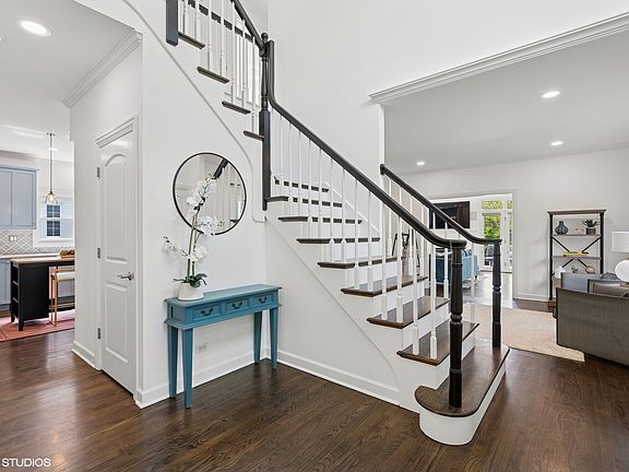 This is the location for which you move to the suburbs! Adjacent to Watts Park to the south and west offering direct access to baseball field, frisbee disc golf course, sledding hill and tennis courts right thru the gate of your fenced-in backyard. This newer-construction home has a open floor plan, is filled with an abundance of sunlight and move-in ready! Features include dramatic two-story entry, formal living room (or home office) and formal dining room. Kitchen with blue painted cabinetry, quartz counters and stainless steel appliances opens to family room with vaulted ceilings, fireplace and French doors leading to a large deck. Primary suite offers a large walk-in closet and private bath featuring double vanities, soaking tub and separate shower. Three additional bedrooms share a hall bath with double vanities. Finished basement expands your living space with a large recreation space, fifth bedroom, full bathroom and plenty of storage. Additional features include a 2-car ATTACHED garage, first-floor laundry, whole-house generator and irrigation system. All of this just blocks from South School, Central School, ice skating rink, town and train. Don't miss!