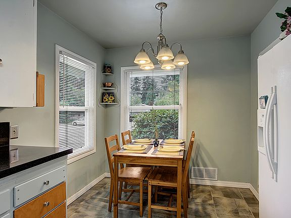 Unique style, modern upgrades and original charm make this home an incredible find. Large windows allow ample natural light into the spacious living room complete with cozy wood burning fireplace. The kitchen features updated appliances, new flooring and breakfast nook. The home has 5 beds, 2.75 baths and a formal dining room. The back yard is flat, fully fenced, very private and includes an outbuilding with light and heat perfect for shop space or a little home away from home. Minutes from I-5.