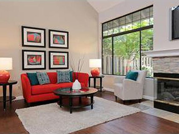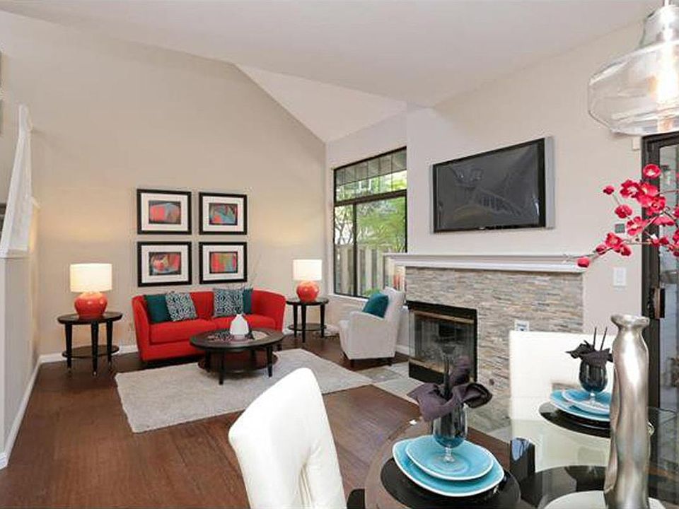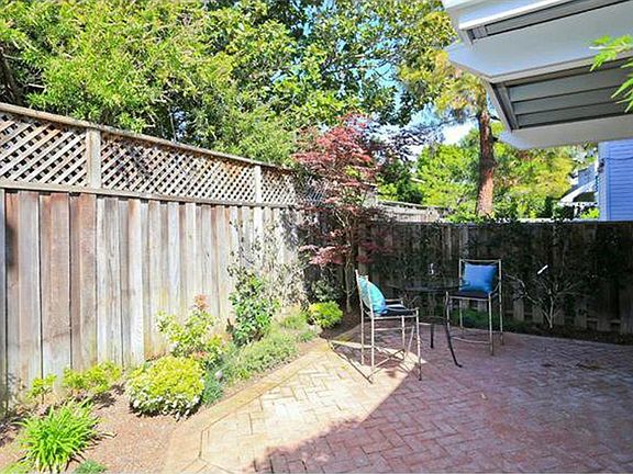 Trendy planned unit townhouse enjoys the best location in the desirable West Court complex. Soaring ceilings lend an open airy feel, living room / dining room has modern natural stacked stone fireplace and sliding door access to the sunny west facing private patio garden with room to entertain and BBQ. Remodeled kitchen with granite counters, island with breakfast bar, abundant storage and gas cooking. Upstairs features two master suites with high ceilings and their own balconies. Largest suite boasts a fully fitted walk in closet, dual vanities and tiled floors. Ample storage throughout, freshly painted interior, new carpet. Large one car attached garage and one carport. Tank-less on demand water-heater. Close to downtown Mountain View, Caltrain, easy access to freeways, and only a hop, skip and a jump to Google. Professionally managed association 1 year lease, no pets preferred, no smoking, need credit report, bank statement along with application