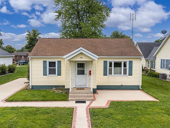 Looking for a cozy cottage with lots of character? Attractive front sidewalk, driveway, & patio all stamped with red brick-look edging. Alley access to the backyard with large wood deck, Shade tree, & metal utility shed. Butterflies & hummingbirds frequent the flowering bushes. The home has a covered front porch and arched foyer entry, original hardwood flooring, custom cabinetry, all appliances, built-in shelving & bookcases, natural wood doors & trim, vinyl replacement windows, lots of storage options and so much more. The basement can be accessed from the kitchen or from the backyard making it more convenient when taking large items in and out. Located in the heart of Breese with parks, schools, and businesses in close proximity.