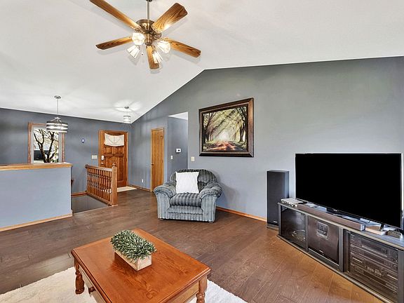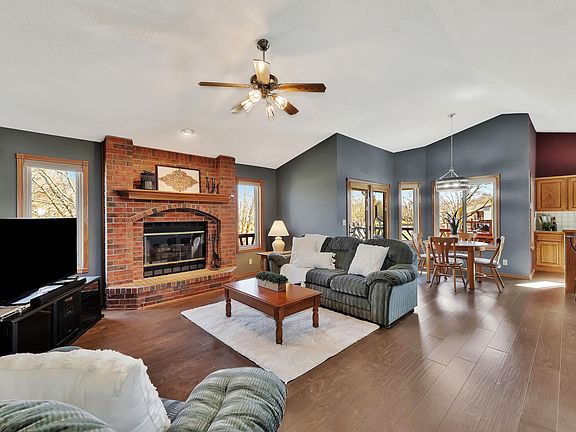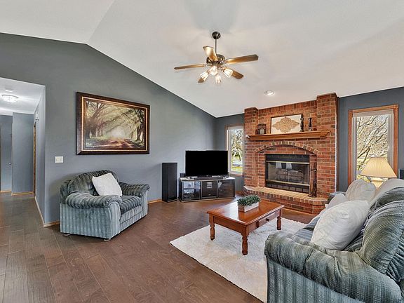 Welcome to this charming 4-bedroom, 3-bathroom home situated on a corner lot with a picturesque view. The property boasts an oversized 28 x 30 ft garage, generously accommodating three full-size trucks. The interior has been tastefully updated with new carpet upstairs and beautiful hardwood flooring throughout. Enjoy the warmth of a wood-burning fireplace upstairs and a gas fireplace in the basement, creating a cozy atmosphere in both the living spaces. The windows and siding were replaced in 2017, providing modern aesthetics and improved energy efficiency. The master suite offers a luxurious retreat with a jetted tub, separate shower, and new flooring in the attached bath. The walk-out basement features a wet bar, making it an ideal space for entertaining. Revel in the scenic views from both the view-out basement and the walk-out access to the backyard. Plus separate game room for that pool table you have been wanting! The property backs up to a serene pond, providing a tranquil backdrop to your outdoor activities. The roof was replaced in 2019, ensuring peace of mind for years to come. This home seamlessly blends comfort, style, and functionality, offering a delightful living experience. Don't miss the opportunity to make this beautifully updated and well-maintained property your new home.