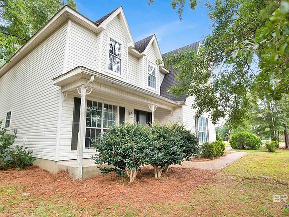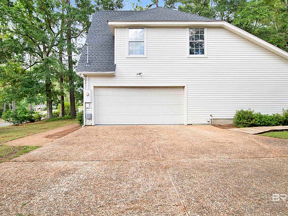 Welcome to this well-maintained home in the sought-after Lake Forest community! While it offers plenty of charm, it’s ready for your personal updates to make it truly shine. Step inside to soaring ceilings in the living room that extend to the second floor, creating an open and inviting feel. The spacious kitchen features stainless steel appliances and plenty of storage. Upstairs, you’ll find all bedrooms, including the primary suite with a large walk-in closet, a roomy bathroom with a double vanity, soaking tub, and separate shower. Enjoy outdoor living year-round with the huge enclosed back patio—windows can be fully opened to let in the spring breeze or closed for cozy evenings. The property also boasts a two-car garage, additional storage barn, and a large yard with mature trees offering shade and privacy. A generous front yard serves as a buffer from the street, and convenient access to Dunbar Loop makes coming and going a breeze without pulling directly onto the main road. This home combines space, privacy, and convenience in one of Baldwin County’s most established neighborhoods. Buyer to verify all information during due diligence.