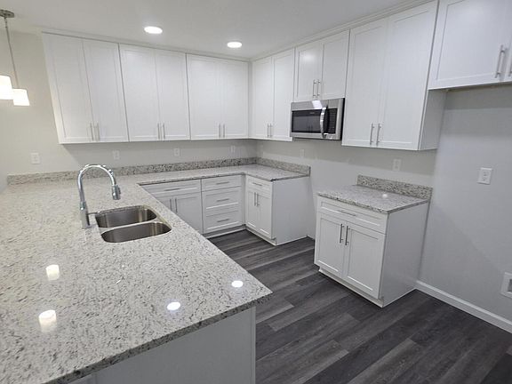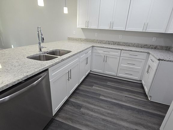 Stylish white cabinetsGranite countertopsOpen floor planPlush carpetingWood-look vinyl planksStainless-steel kitchen appliance package