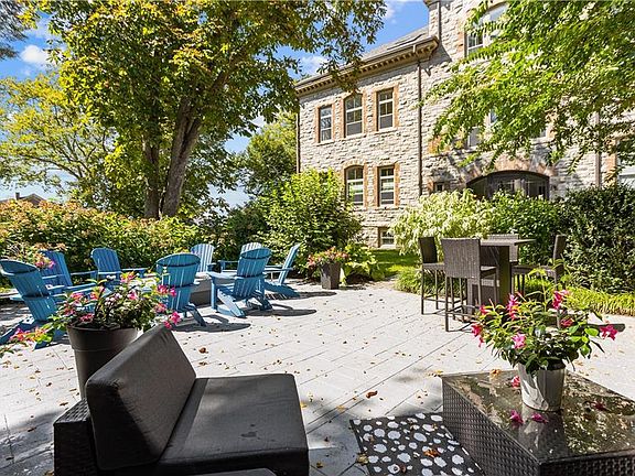 The only first floor unit ever to be offered to the public at the Residences at Lenthal School. With a walk score of 90 this is Newport living at its best. Enjoy dining out, hopping on a boat, taking in a mansion tour, playing tennis or going to the beach. Lenthal School Condominiums is luxury living with secured entry, central air, gas heat, and sprawling grounds abutting the Elms Mansion. Multiple gathering areas include a large shared patio surrounded by trees and a rooftop deck with unbeatable city and harbor views. This is a corner unit 2-bedroom 2 full bath featuring a primary with en-suite, a custom open-concept bar, stainless appliances, a high end gas range, washer & dryer, jetted tub, original hardwoods and 12 foot ceilings. Low HOA includes assigned off street parking for two cars, grounds maintenance, common areas, trash, snow removal and insurance.