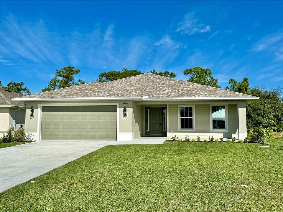 Welcome to your dream home in the thriving Rotonda Heights neighborhood of Rotonda West! This stunning Regina model, constructed by JWM Residential, is 100% complete and ready for sale. This exquisite pool home boasts ALL IMPACT WINDOWS AND SLIDERS and is Situated in an X flood zone allowing peace of mind during the next hurricane season. Come see the modern design and the array of desirable features that will capture your heart. Step inside and be greeted by an inviting open-concept living space, adorned with elegant tray ceilings that create a sense of spaciousness and comfort. The front porch offers ample room for seating, providing the perfect spot to unwind and soak in the surroundings. High-quality plank porcelain tile flows throughout the entire home, adding a touch of luxury to every corner. The kitchen is a chef's delight, featuring Leather finish Stone countertops, a tasteful tile backsplash, and shaker cabinets with crown molding. Stainless steel Samsung appliances and a convenient walk-in pantry complete the picture, ensuring both style and functionality. The laundry room offers proper cabinets for added storage. The owner's suite bathroom is a private oasis, boasting dual vanities and private toilet facilities. The second bath offers a tub-shower combo for added convenience. Thoughtfully designed, the home includes a comprehensive ceiling fan and lighting fixture package, as well as energy-efficient LED recessed lighting in the kitchen, living room, and owner's suite. A Nest thermostat further enhances energy management. Outside, the front porch features a textured Spraycrete surface, adding to the overall aesthetic. The spacious garage, with its attractive epoxy chip floor finish, offers ample space for your vehicles and storage needs. Sliding glass doors open to the pool deck from both the living area and the owner's suite, seamlessly blending indoor and outdoor living. The screened pool deck, covered lanai enclosure, and luxurious Pebble-Tec finished concrete pool create the ultimate relaxation and entertainment space, measuring 43x20 feet, 29x10 feet, and 23x12 feet. The well-maintained yard is beautifully landscaped and fully irrigated with a RainBird system, ensuring a lush and vibrant outdoor environment. And that's not all - the builder has added many thoughtful extras that any homeowner will undoubtedly appreciate. Don't miss the opportunity to explore all that this exceptional home has to offer. Schedule your showing today