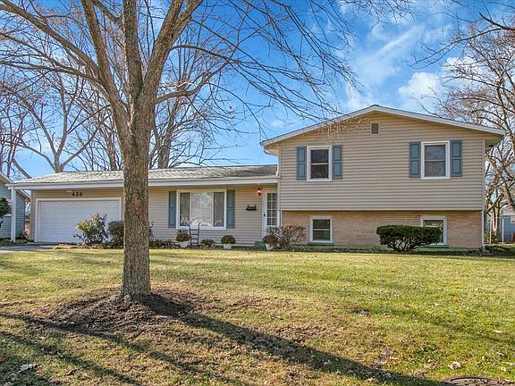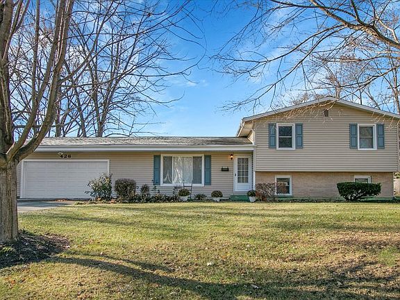 Welcome to this comfortable home on one of the largest lots in this well-established, peaceful subdivision. This spacious tri-level offers 4 BR, 1 1/2 bath, an office, and an oversized 2 1/2-car heated garage. Enjoy strolling along the neighborhood sidewalks lined with mature trees on your way to school, neighborhood parks, and the library. Close to shopping, dining, and major transportation routes. The main level has a living room and dining room, which have new luxury vinyl flooring. The kitchen, also on the main level, has been completely renovated with 42" maple cabinets, solid surface Quartz counters, and ceramic tile floor. The dining room has a sliding patio door which opens to the beautiful backyard. The upper level has three bedrooms and a full bathroom. The lower level features the fourth bedroom with a walk-in closet, a half bath, an office, a large utility area, and access to the backyard. The crawlspace is fully Perma-Sealed and has a sump pump with a battery backup unit. The home features a newer water heater and HVAC system with a new Ecobee thermostat. It has been under a service contract since it was installed and has a transferable warrantee. The backyard features a large concrete patio covered by a metal roof gazebo surrounded by lush grass, mature bushes, and large trees. There is fencing on 3 sides of the yard. The heated 2 1/2-car garage features a work area and extensive built in storage cabinets. A pull-down ladder accesses additional storage in attic. The maintenance free exterior offers vinyl siding, aluminum soffits and facia and vinyl clad windows. The main sewer pipe from the house to the Village sewer has also been replaced. Quick close possible.