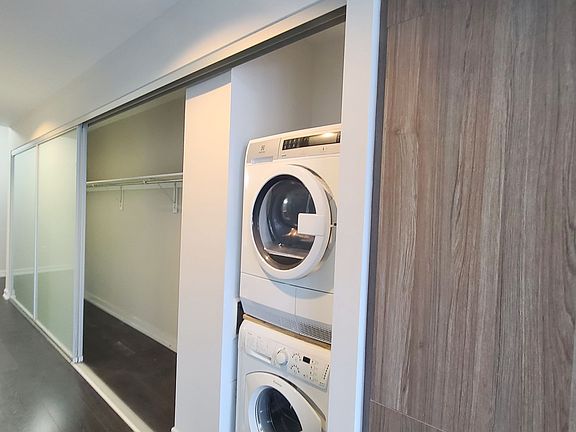 Floor to ceiling windowUpgraded roller blindsJuliette balconySpacious denDesigner kitchenBuilt-in integrated panel appliancesGranite counter top