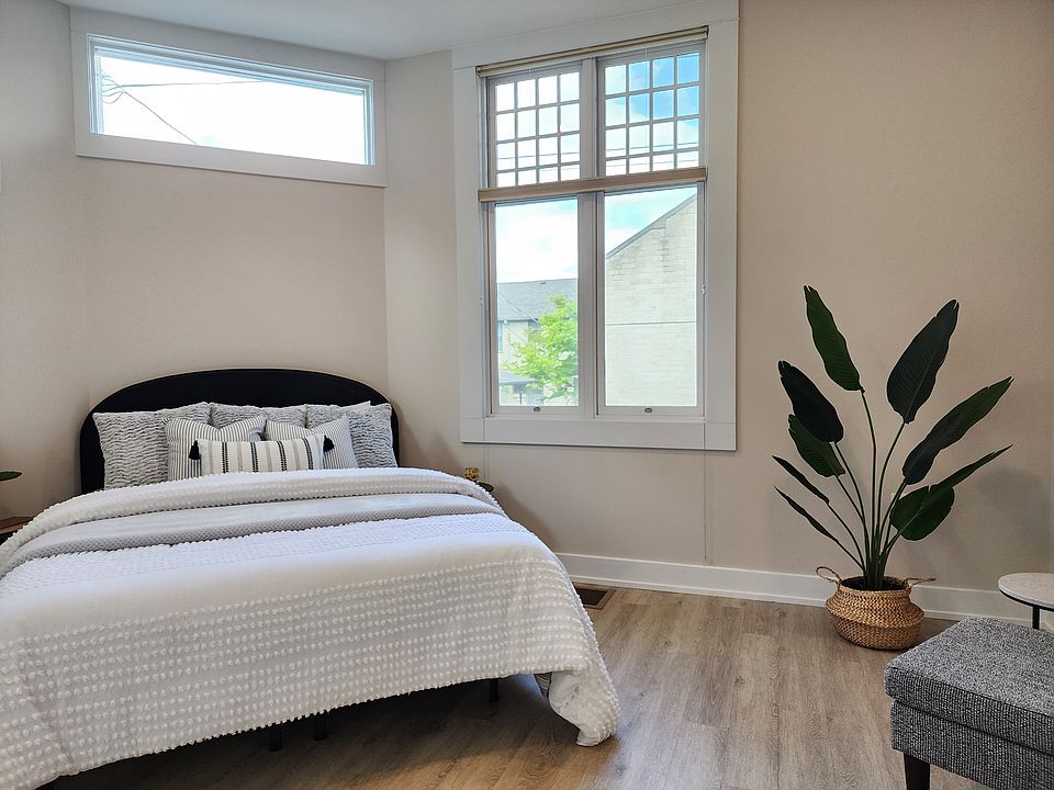 2 large bedrooms with big closets. 1 bathroom, shower only.