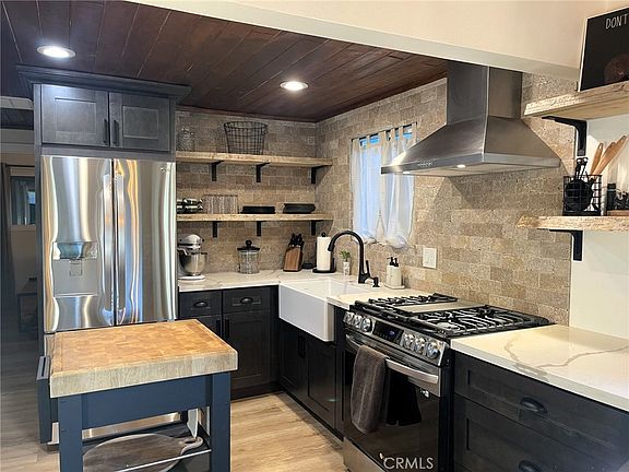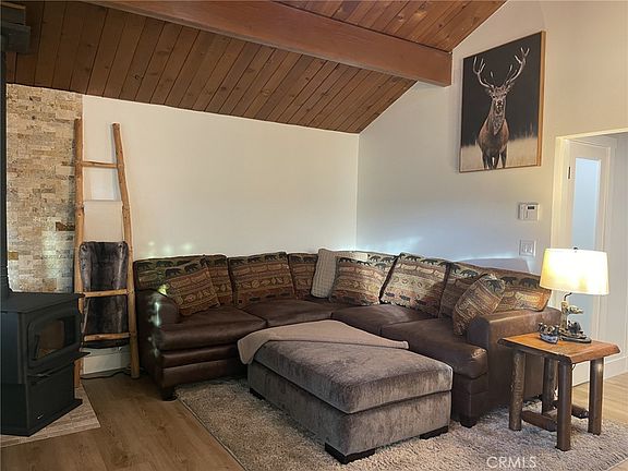 You will stay warm in the winter with the wood burning stove or central heat. The Remodeled kitchen has a nice pantry for extra storage. The guest bedroom has built in Queen Bunk Beds that sleeps 4 easily. Updates Include: All New- R30 Insulation under cabin, new tankless water heater, new central heating , new copper plumbing, new windows, new flooring, new doors, Living room -new wood burning stove, new lighting , new ceiling fan, Remodeled Kitchen-new kitchen cabinets with quartz counters, new farm sink, new stove, new hood vent, new fridge, new recessed lighting, new pantry with quartz counter, remodeled bathrooms -new tub, new toilets, new sinks, new tile, Bedrooms- new ceiling fans, new light fixtures, new barn doors, and all new paint inside and out. You have to see this one in person because it packs a lot in this 2bd 1 1/2 bath. You could live full time or have a nice vacation home that is close to everything that Big Bear has to offer.