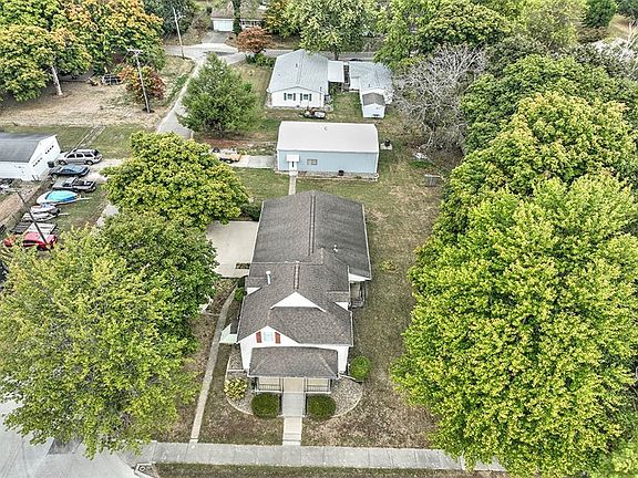 This small town gem located on a sidewalk lined corner lot with back yard alley has been in the same family since constructed in 1908. Eat in kitchen. Original wood work in front room. The side load, 30x32 attached garage has a convenient stool closet and wide steps leading to the convenient laundry/mud porch and onto the kitchen. The basement has access from inside and also an exterior escape. The 28x40 steel building in back has power and a concrete floor plus a back loft. Great for the hobbyist, storage or even gatherings. The yard has plenty of space for play and gardening. The front porch is a wonderful place to sit and watch the world go by!