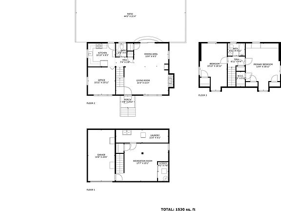 - Total interior livable area: 1,530 sqft