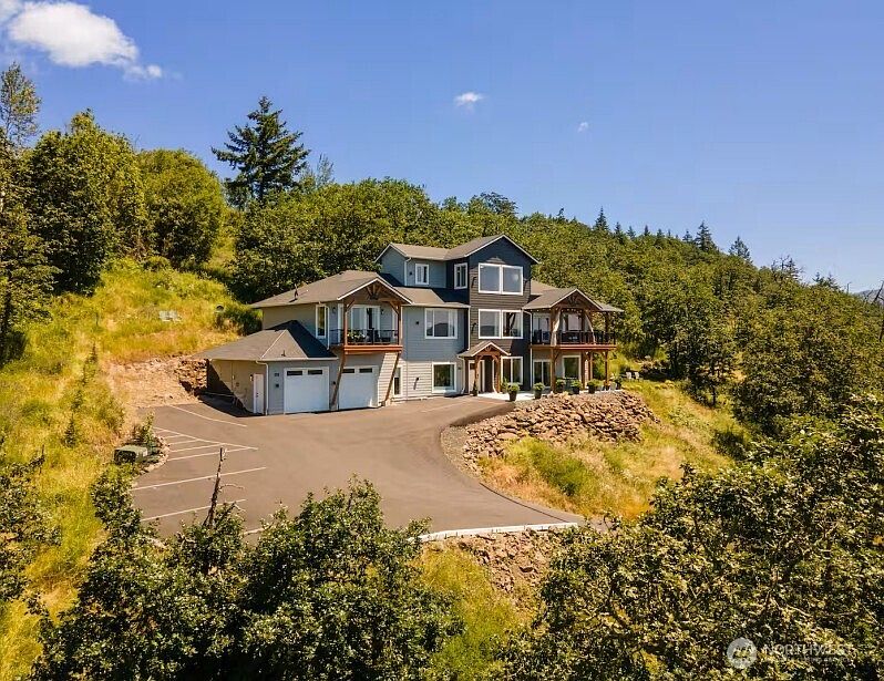 Custom-built lodge-style home blends stunning views of Columbia River, w/exceptional versatility. The spacious layout features four private suites, ideal for multigenerational living, all while ensuring comfort and privacy. Each suite includes its own entrance, kitchen or kitchenette, full bath, and living spaces. Large windows throughout provide breathtaking views from every room. This property also offers a strong income potential, with proven success as an Airbnb and VRBO rental. Whether you're seeking a single-family forever home, a flexible retreat, a multi-generational home, or an income-generating investment, this beautifully maintained residence offers unmatched potential in a peaceful, sought-after setting just minutes from town.