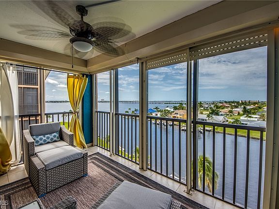 Elegance meets comfort in this Stunning Waterfront Condo that's tastefully decorated with amazing views of the wide intersecting canal and the Caloosahatchee River. Truly a Beautiful Condo! Wake up to awe-inspiring river and canal views from every room in this impressive, spacious 2-bed, 2-bath condo. Elevate your lifestyle on the 7th floor, so peaceful, free from the hum of A/Cs and offering the perfect balance of comfort and tranquility. Upgraded, high-end kitchen will bring out the Chef in you which features granite countertops, SS appliances & stylish tile backsplash. Start each day inspired as you awake to gorgeous views from your luxurious primary suite. Furnishings Negotiable! New Wi-Fi-enabled AC in 2022. Condo has premium LVP flooring throughout, open floor plan, large laundry room for your convenience with FULL size washer & dryer, split bedrooms, built-in cabinets with Murphy bed & pretty screened balcony to enjoy all year round plus you can watch the Fourth of July fireworks from your Lanai. Hurricane impact-resistant windows provide added peace of mind, while two elevators ensure quick and easy access to your unit. Relax by the sparkling Pool which has one of the best locations with panoramic views of the RIVER, enjoy the calming water and boats traveling out to the Gulf. Direct Access, No Bridges! Located at the end of Beach Parkway, this quiet and desirable location is just a short walk to the soon-to-be-completed $16 million renovated Jaycee Park. River Towers Condo is an active 55+ community offering a variety of amenities, including a heated riverfront pool, shuffleboard, a Tiki area perfect for relaxing while watching dolphins and manatees, a BBQ area, 2 community rooms, shuffleboard courts & a library. Each unit is assigned a parking spot with plenty of guest parking & an additional 10x10 storage unit. The HOA includes water & cable, with complete restrictions on pets, smoking, and rentals for the first three years of ownership. Imagine waking up every day to world-class fishing, vibrant marine life, and endless opportunities for exploration. Whether you're looking for a serene second home or a permanent residence, River Towers provides an unbeatable blend of prime location, care-free living and top-notch community amenities. This beautiful condo is your gateway to the ultimate Florida lifestyle.