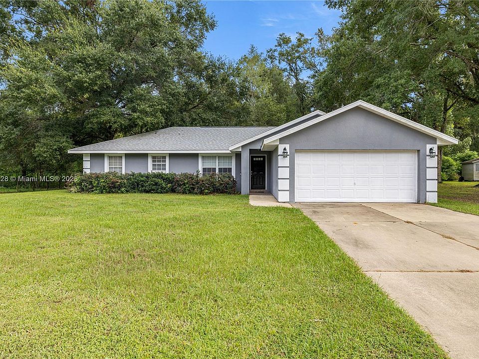 Welcome to this beautiful 3-bedroom, 2-bath home in the desirable High Pointe community, set on a quiet cul-de-sac backing to the Florida Greenway. Built in 2002 and updated, it features an open floorplan, spacious living and dining areas, and a kitchen with abundant cabinetry and 2022 appliances—refrigerator, stove, and dishwasher. The oversized primary suite offers a walk-in shower, dual sinks, and soaking tub, while the guest bath boasts updated fixtures. In 2022, the roof, water heater, and shower fixtures were replaced, adding peace of mind. Wired for cable and fiber optic, this home is move-in ready. Freshly painted inside and out, with no rear neighbors and a private backyard for relaxing or entertaining, just minutes from shopping, dining, and the Cross Florida Greenway trails.