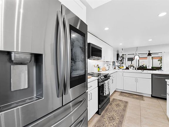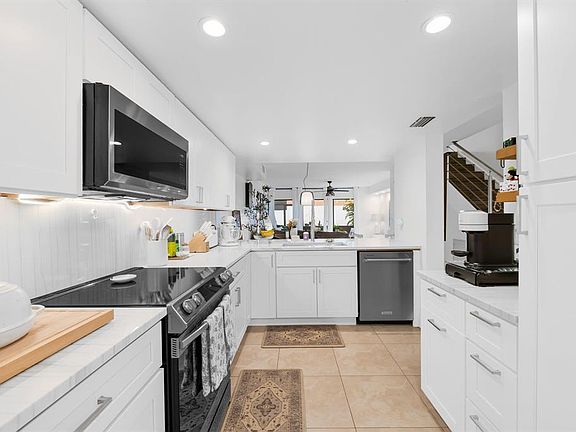 Stylish cabinetryFully renovated kitchenQuartz countersUpdated staircaseNeutral finishesLarge screened patioStainless-steel appliances