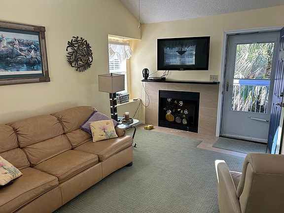 Freshly painted. New porcelain tile at entry, kitchen and baths. Walk in showers with security bars. Porcelain countertops. 40" flat screen tv in both family area and master bedroom. Fully furnished. Furnished with all kitchen accessories, bed and bath linens. Within walking distance of restaurants & grocery store. A cross street from beach with public access.